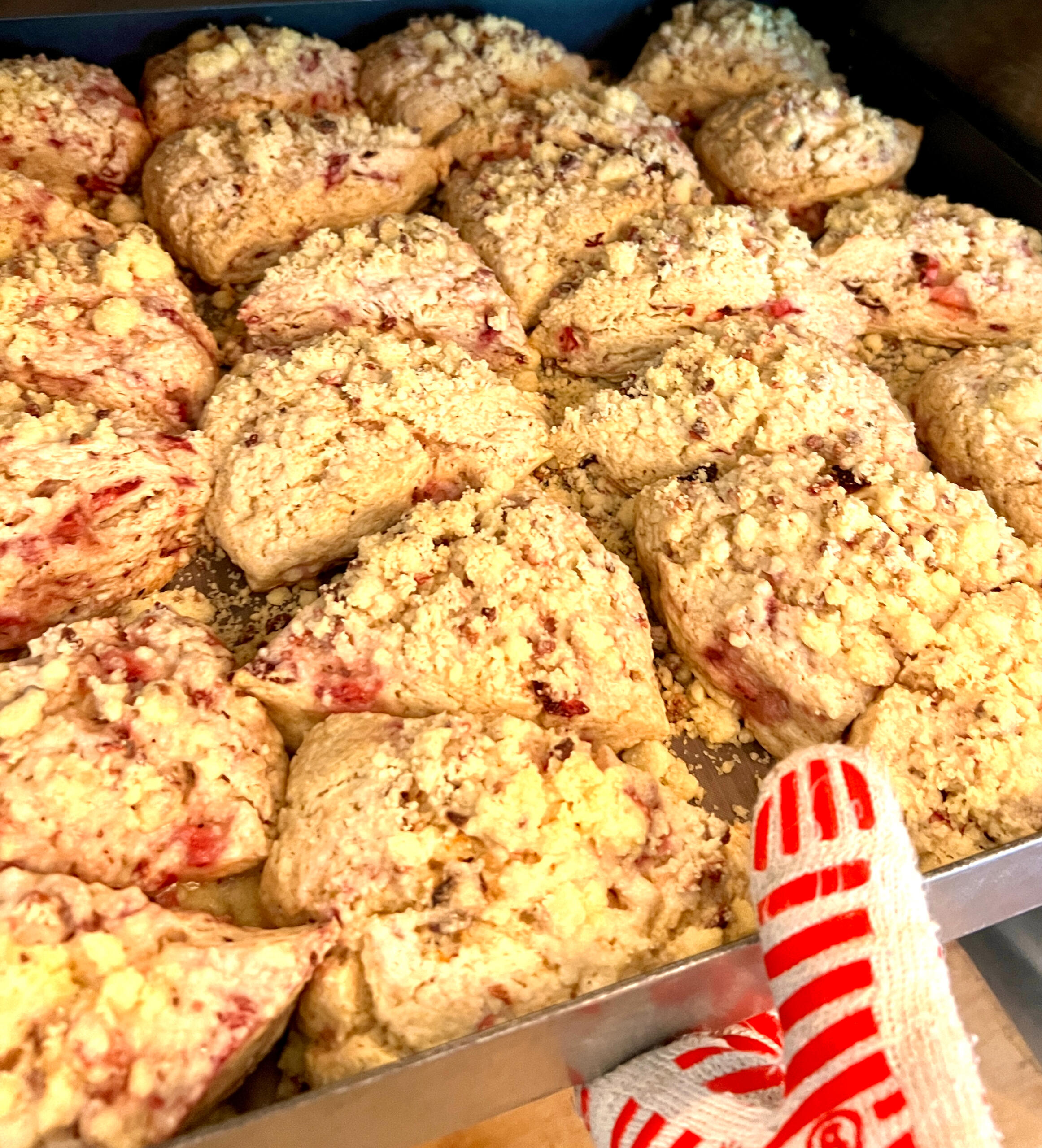 reheat in a 350 degree oven for 5-8 minutes. If scones are frosted, watch carefully so frosting doesn't melt.